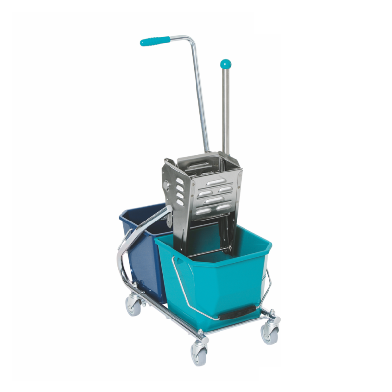• Very sturdy two-bucket wet-mopping unit for high hygiene standards made of galvanized steel tubing.